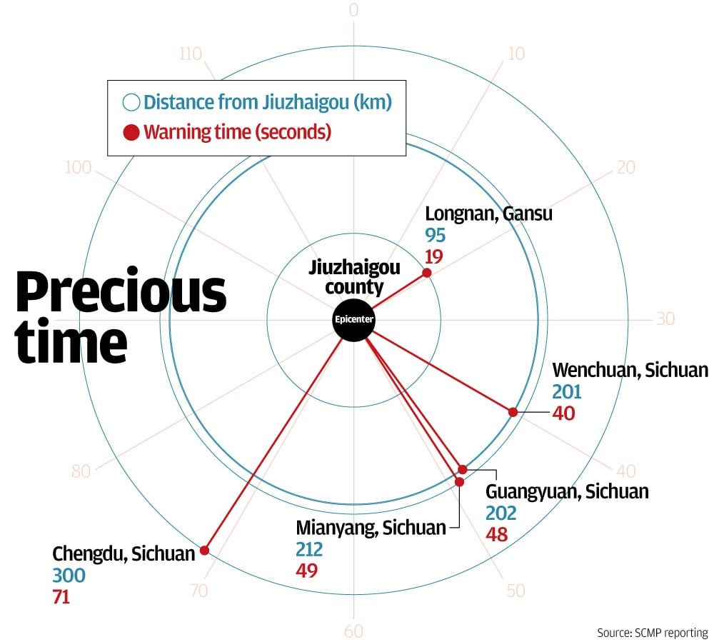 Developed by the China Earthquake Administration in the wake of the 2008 magnitude 7.9 quake in Wenchuan, which left more than 80,000 people dead, the system alerted some people in the region more than a minute before the initial tremor struck in Jiuzhaigou county.