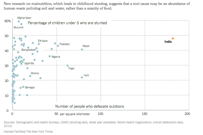 New research has found that poor sanitation is a major cause of stunted children in India. These children’s bodies divert energy and nutrients away from growth and brain development to prioritize infection-fighting survival,” said Jean Humphrey, a professor of human nutrition at Johns Hopkins Bloomberg School of Public Health, in an interview with New York Times. “When this happens during the first two years of life, children become stunted. What’s particularly disturbing is that the lost height and intelligence are permanent.”