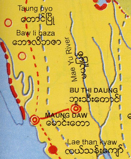 Even a few Buddhists who managed to trek across the Mayu Range to the Butheetaung and Kyauktaw were hunted down and killed by the Bengali-Muslims from that area especially the Bengali village of Let-wae-tet village near the town of Butheetaung.